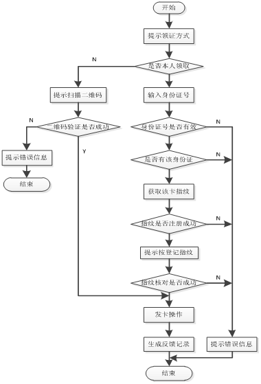 3. 系统根据用户输入的身份证号码验证库中是否有该身份证号码的身份证卡。
