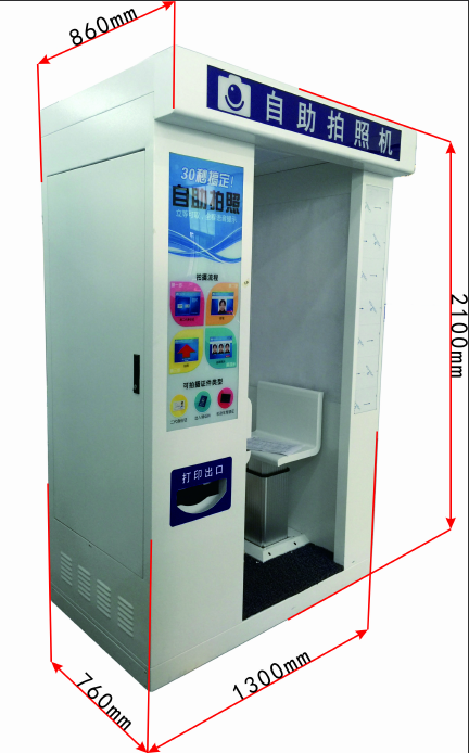 一、产品介绍 自助摄影系统(Photo Booth)最早源于马修.斯提芬思1889年发明专利。Photo Booth 也可以翻译成自助摄影棚,自助摄影房,或自助摄影亭。同年,法国人恩加伯也研制出了一台自拍摄影机。世界上第一个带有进出口和遮光帘的自助式摄影房是1925年由安纳托.约瑟夫设计制造并放置在美国纽约百老汇的自助式摄影房。 中国是一个世界上人口最多的国家。中国对证件照的要求是很多的,规格非常繁多,远远超过欧洲国家对证件照的要求。我们常用的证件照比如身份证、护照、港澳通行证、驾驶证、社保卡、毕业证、结婚证等等。 以往拍摄各种证件照片需要到专门的照相馆去,由于人多拥挤,每人只有一次拍照机会并且取照片还要等上十多分钟,而且需要为拍照专门腾出一间办公室作为拍照场所,需要专职拍照人员。证件照自助拍照机占地1平米,30秒完成拍照、出相片,解决了拍照空间狭窄、人手不足、等待时间较长等一系列难题。