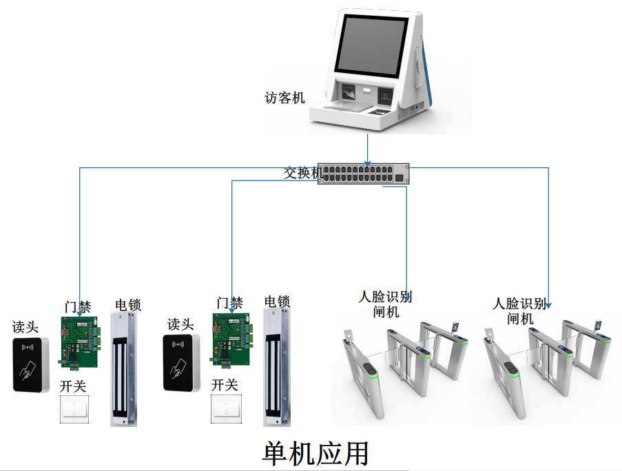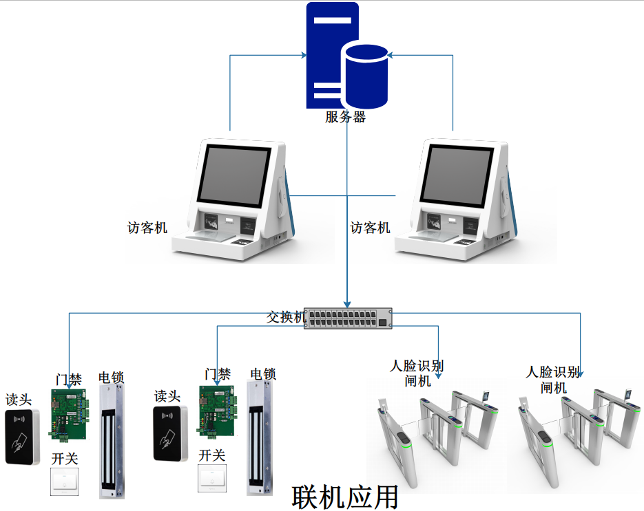 》访客机依靠本地服务结合人脸门禁/验证机以及通道闸/门锁的单机应用
