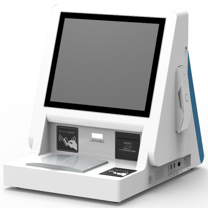 QL-FK T17SP2K 台式双屏访客机,外形简洁、时尚;采用钣金机身,表面喷漆处理;内置Mini ITX工控机,主屏采用17英寸十点电容触摸显示屏,副屏采用15英寸液晶显示屏,集成了二代身份证阅读器、凭条打印机、人像摄像头、证件扫描仪、射频读卡器、二维码扫描仪、电话语音盒以及话机等功能部件;设备集成度高,功能全面,适应性强;
