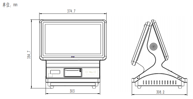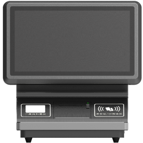 QL-FK T14W 台式访客机,外形简洁、小巧;采用钣金机身以及开模注塑屏框,表面喷漆处理;内置工控机,前置14英寸十点电容触摸屏,后置12.1英寸副显示屏,集成了二代身份证阅读器、凭条打印机、人像摄像头、二维码扫码等功能部件;设备集成度高,功能全面,适应性强; 一、功能特性 1.触摸显示功能 》14英寸显示屏,1920*1080分辨率 》十点触控操作,可替代键鼠操作 》12.1英寸副显示屏,1024*768分辨率 2.凭条打印功能 》支持会客凭证打印 》自动切纸功能(半切) 》支持打印模板编辑 》58mm宽热敏打印 3.证件读取功能 》支持自动读取二代身份证 》符合ISO14443 Type B标准 》自动提取证件信息 4.自动扫码功能 》采用30万像素CMOS器件拍照扫码 》图形分辨率640*480 》视场角110° 》解码能力大多数一维条码以及二维码 5.语音通话功能 》内置单路语音通话模块(需外接电话机) 》自动拨号,支持内外线拨号(需外接电话线) 6.人像拍照功能 》采用200万像素摄像头 》支持自动白平衡 》支持逆光补偿 》支持宽动态处理 》支持拍摄角度调节 7.人证比对功能(可选) 》采用内置摄像头进行人像拍摄 》人脸追踪 》比对阈值可调 》拍摄角度可上下调节二、物理接口 24V DC电源接口X1 RJ45网络接口X1 LINE电话线接口X1 PHONE电话接口X1 USB接口X2