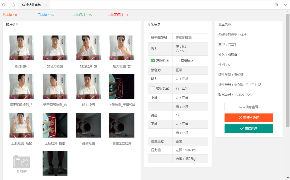 ▲自动判断眼疾、白化病、头眼不正等残障人士,通过系统的绿色通道将照片传入后台,由人工确认残障程度并强制入库。
