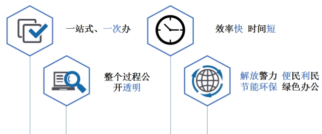 为解放警力、便民利民,大胆创新、研制出车驾业务办理一体机,该产品集成图像识别、处理与控制等多种先进技术的自助车驾管业务办理设备,全程自动语音提示、现金、银行卡、微信等多种支付方式,与公安交管系统无缝对接,提供符合驾驶证办理相关规范的24小时全自助服务。